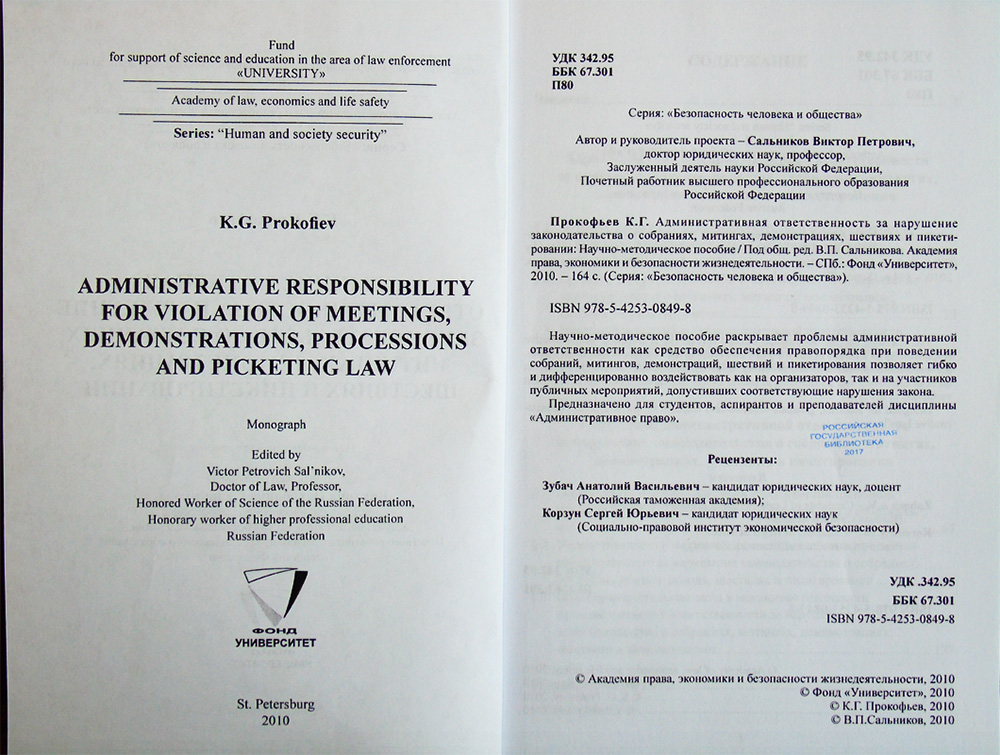 Примечательно то, что после вывешивания летом прошлого года экспертизы диссертации Прокофьева, в РГБ внезапно появилась книга, датированная 2010 годом, практически полностью тождественная диссертации Прокофьева, защищенной четырьмя годами позже. Книга тождественна диссертации настолько, что на стр. 8 и 9 автор называет ее «диссертационным исследованием». Странно – за четыре года до защиты спутать книгу с диссертацией, да еще несколько раз?